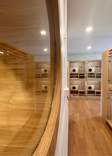 Comfortable and safe accommodations, with dedicated areas for play and exercise.